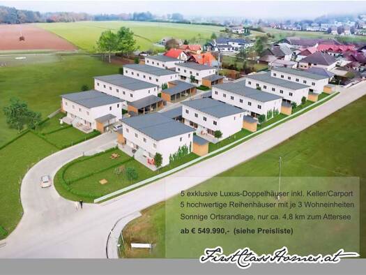 Neubau-Erstbezug, wenige Kilometer vom Attersee entfernt: 120m² Wohnfläche, 3 Schlafzimmer, Balkon, 20m² Terrasse, Wärmepumpe, Fußbodenheizung,... ca. 460 m² Grundstück belagsfertig, HWB 36 angeboten...