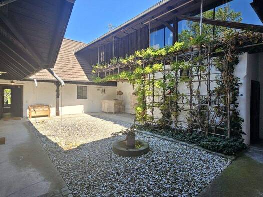 OBJEKTBESCHREIBUNG Zum Verkauf steht eine außergewöhnliche Liegenschaft im Herzen der Marktgemeinde Esternberg. Das Anwesen besteht aus einem historischen Hauptgebäude, dessen Ursprünge bis in die Ze...