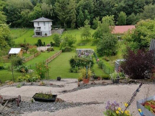unterkellertes Einfamilienhaus mit Garage mit 227 qm WNFl. und 2.945 qm Grund - mit Kellergeschoss, Erdgeschoss und Dachgeschoss mit Balkon - dazu Nebengebäude, Holzlager, Glashaus, Carport und Holzh...