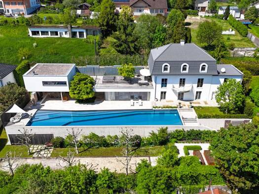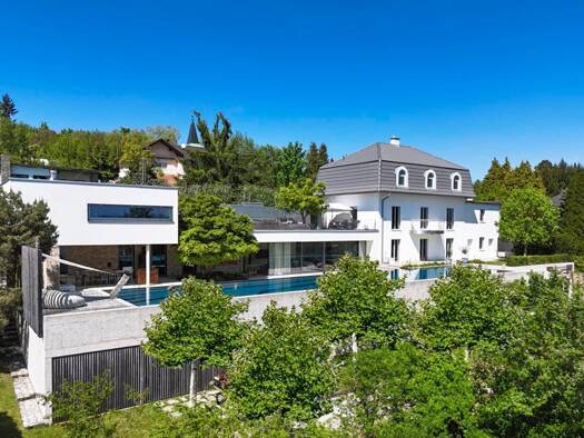 Objektbeschreibung: Diese außergewöhnliche Villa vereint in perfekter Harmonie zwei architektonische Handschriften - der klassisch-elegante Villenstil des ursprünglichen Stammhauses (ca. 2002) versch...
