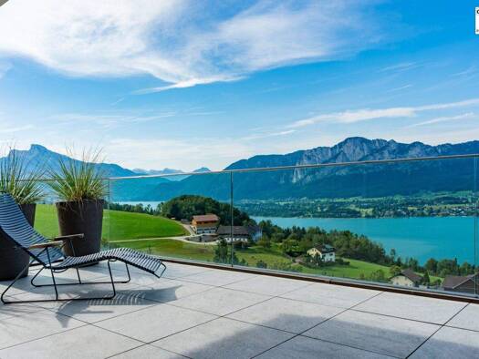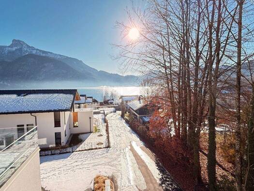 Panoramalage mit unverbaubarem See- und Drachenwandblick In einer der begehrtesten Wohnlagen von Mondsee präsentiert sich dieses moderne und hochwertig errichtete Architektenhaus als wahres Juwel für...