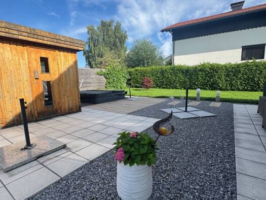 Wohnen & arbeiten möglich! Behagliches und leistbares Familienhaus in Mondsee mit ca. 170 m² Wnfl., großer Grund mit 815 m², ca. 45 m² SW-Terrasse mit Loungebereich und Gartenhaus, Doppelgarage. ...