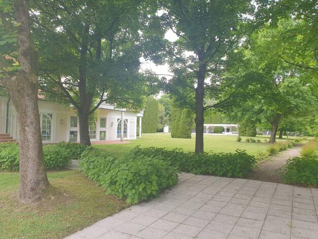 Villa auf einem herrlichen Parkgrundstück, mit Nebengebäude und Erweiterungsmöglichkeit - ideal für eine große Familie oder zum Wohnen & Arbeiten. Wohnnutzflächen: - Haupthaus: ca. 300 m² zzgl. A...