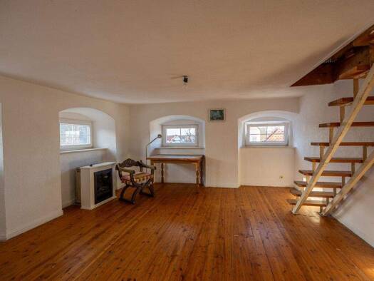 Das ehemalige Bauernhaus wurde in ein Ein- bezw. Zweifamilienhaus umgebaut. Die Deckenhöhe beträgt etwa 2,10m. Erst vor wenigen Jahren wurde eine Holzzentralheizung eingebaut. Das Gebäude ist stark r...