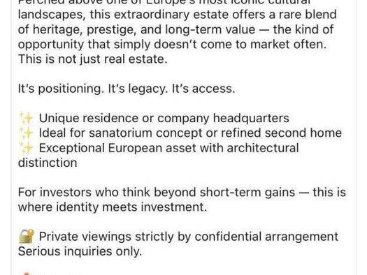 ?? What If Your Next Investment Was a Landmark, Not Just an Asset? Most investments are numbers on a spreadsheet. This one is a statement. Perched above one of Europe's most iconic cultural landscape...