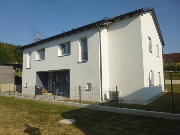 Doppelhaushälfte in Alleinlage mit unverbaubarer Aussicht Dieses im Jahr 2019 errichtete Doppelhaus befindet sich in seltener Alleinlage und überzeugt durch eine unverbaubare Aussicht sowie unmittelb...
