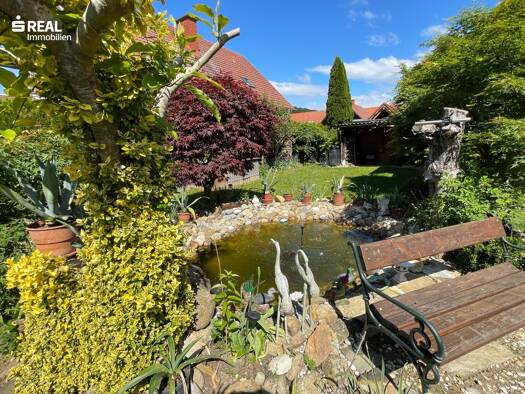 Rarität in Gamlitz - Charmantes Haus mit Garten, Biotop & Carport Dieses sehr gepflegte Einfamilienhaus in sonniger, ruhiger Lage bietet mit liebevoll angelegtem Garten, Biotop, Carport und Neben...