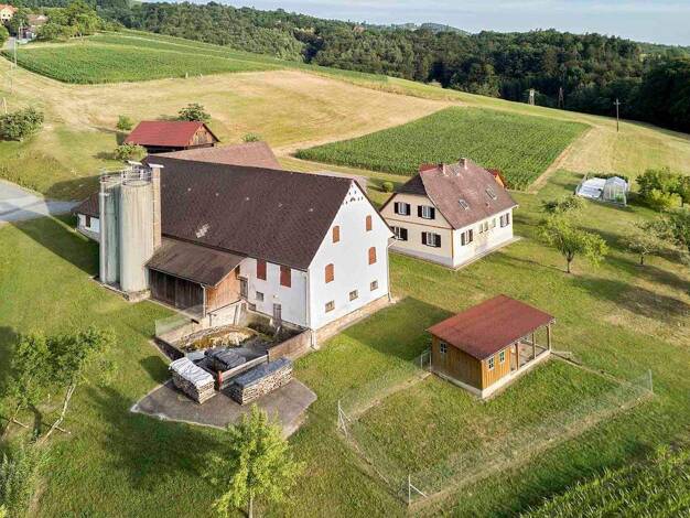 Objektnr: 1069528 Idyllische Landwirtschaft mit 9 ha Grund, Wirtschaftsgebäude und Kellerstöckl in ruhiger Lage! Inmitten der sanften Hügellandschaft der Südsteiermark befindet sich dieses charmante ...