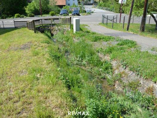 Die Grundstücksbeschreibung Von der Lambrechter Straße führt die kurze Zufahrt über eine Brücke, die den Lambach quert, direkt zur Liegenschaft. Die Zufahrt ist bereits auf Eigengrund g...