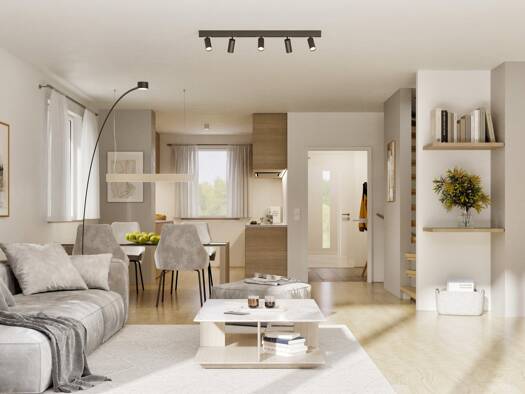 Großzügiges Wohnkonzept mit lichtdurchfluteten Räumen Bereits beim Betreten des Hauses empfängt Sie eine helle, einladende Atmosphäre, die durch große Fensterflächen und eine intelligente Raumaufteil...