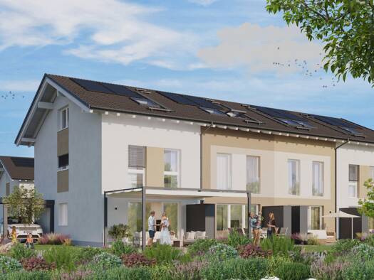 DAS LILIENQUARTIER 23 in Straßwalchen Neubau-Eckreihenhaus ACHTZEHN C mit tollem Garten, Carport und bis zu 6 Zimmern. Das Mittelreihenhaus mit ca. 150 m² Wohnfläche, einem Südgarten...