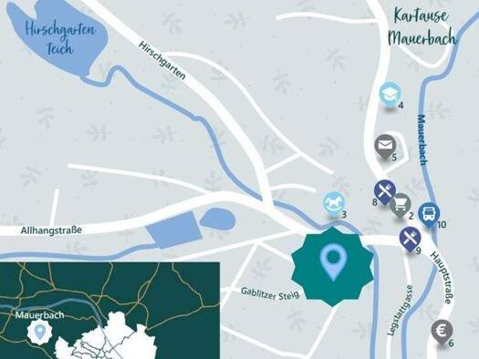 Allgemein: Auf einem wunderschönen Grundstück im Herzen Mauerbachs kommen ab sofort 21 fertiggestellte Reihenhäuser zum Verkauf. Am westlichen Rand, und nur wenige Minuten von der Wiener Stadtgrenze ...