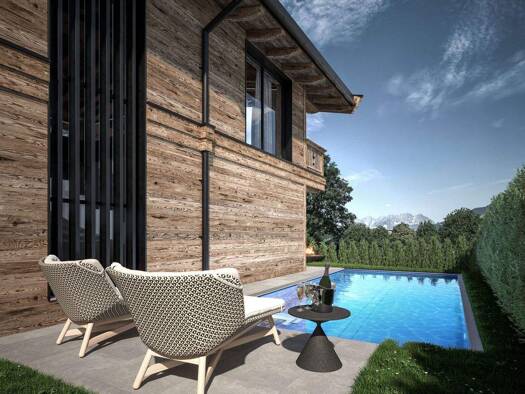 Dieses außergewöhnliche Chalet bietet Luxus und Eleganz in einer atemberaubenden Bergkulisse. Der Ausblick reicht hier vom Massiv des Wilden Kaisers bis hin zu den Südbergen. Darüber hinaus bietet di...