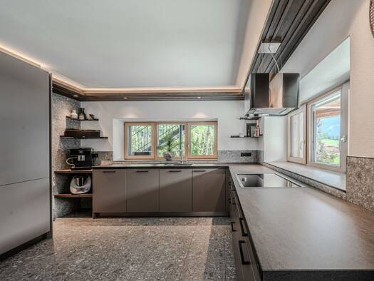 Auf rund 1.000 Metern Seehöhe bietet dieses Chalet einen exklusiven Rückzugsort, um Ruhe, Natur und alpines Lebensgefühl in vollen Zügen zu genießen. Über die Garage gelangt man direkt in das repräse...