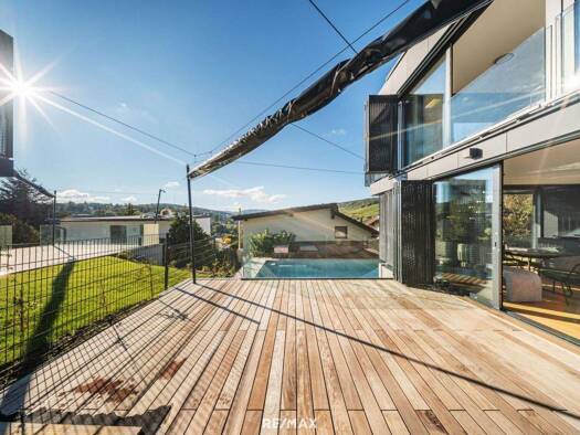 Dieses moderne Einfamilienhaus aus dem Jahr 2014 befindet sich in absoluter Ruhelage am Schafberg. Hochwertige Bauweise, durchdachte Raumaufteilung und großzügige Freiflächen machen dieses Zuhause be...