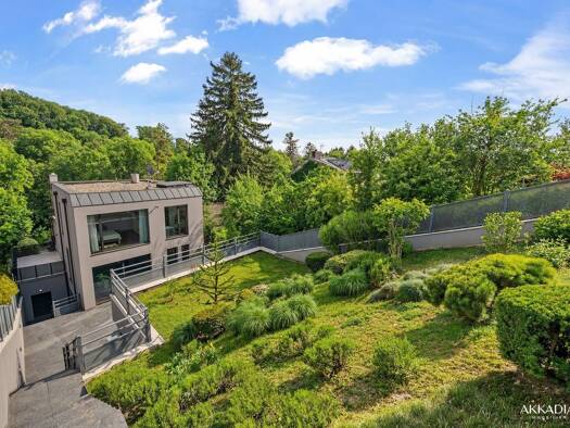 Die Architektenvilla wurde 2008 errichtet und liegt erhaben an einem Südhang in einem ruhigen grünen Viertel des 18. Bezirks mit Blick auf den Pötzleinsdorfer Schlosspark. Die Ausrichtung und Lage ve...