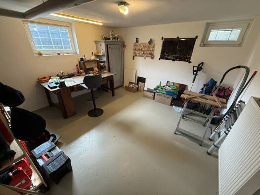 + Ruhige Wohngegend + Haus ist am Ende der Sackgasse + Holzofen im Wohnbereich + Sauna mit Ruheraum + Einliegerwohnnung im Obergeschoss + Überdachter Sitzplatz + Große Doppelgarage + Gartensitzgarnit...