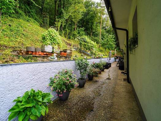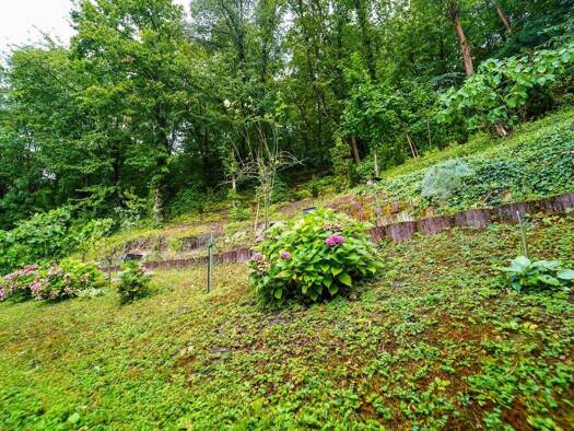 Hanglage, 1-geschossig, unterkellert, mit ausgebautem Dachgeschoss, Gesamtwohnfläche und Nutzfläche von jeweils 225 und 126 Quadratmetern, inklusive Terrasse, Swimmingpool und Garage. Das Haus verfüg...