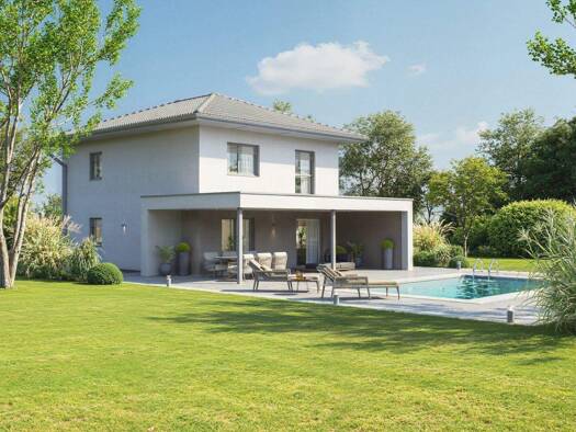 IHR FAMILIENTRAUM IN SONNIGER RUHELAGE Modernes Architektenhaus mit Pool, Weitblick und reduziertem Preis Dieses außergewöhnliche Architektenhaus aus dem Jahr 2022 vereint modernes Wohnen, hochwertig...