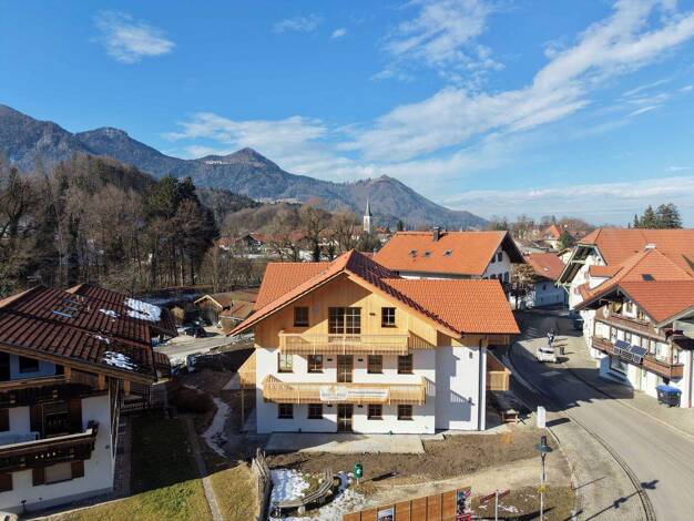 Auf drei Geschossen bietet das neu entstandene Mehrfamilienhaus mit acht Wohneinheiten Wohnkomfort für unterschiedliche Lebenslagen. Das Neubauvorhaben befindet sich in Marquartstein unweit des Erhol...