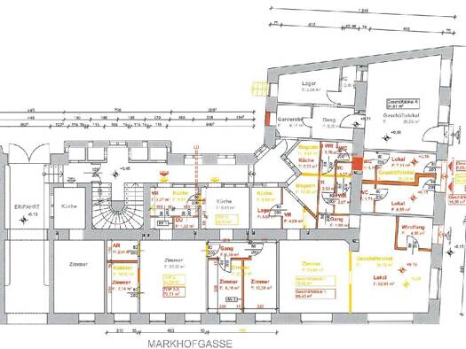 Diese Geschäftsfläche belegt fast den gesamten Erdgeschoss eines Neubauhauses (Wiederaufbau 1954/55) gleich gegenüber vom Hannovermarkt im 20. Bezirk! Diese Gewerbeimmobilie (3 Geschäftslokale) biete...
