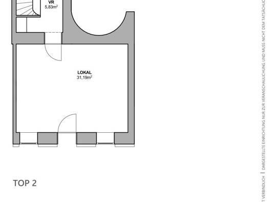 Geschäftslokal mit 102,77 qm Nfl. im Souterrain eines Wohn- und Geschäftshauses; Baujahr um 1900 - bestehend aus Durchgang und 3 Räumen - die Wände und die Decke sind gestrichen, Holzboden und Bodenb...