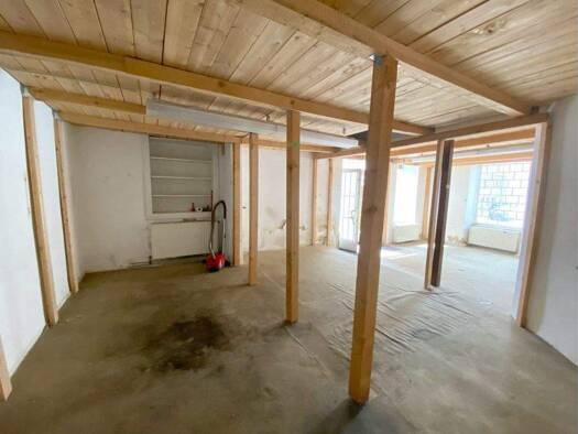 Zum Verkauf steht eine modernisierte Geschäftsfläche (ca. 241 m²) mit weitläufigen Grundriss, hohen Gewölben und großer Garagenbox für 2 PKW mit Lager (ca. 37 m²). Drei Eingangsbereiche und die neu a...