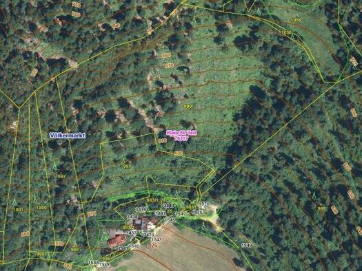 Zum Verkauf kommen hier rund 90.000m² Waldfläche in der Katastralgemeinde Kaning. Das im Bild rot markierte Teilstück wird abgetrennt und steht nicht zum Verkauf. Sohin verbleiben rund 90.000m² Waldf...