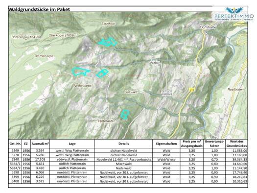 In Arzl im Pitztal kommen mehrere land- und forstwirtschaftliche Grundstücke (ohne Hofstelle) zum Verkauf. Der Kauf kann wahlweise im Gesamten erfolgen oder in den folgenden Paketen. PAKET 2:&...
