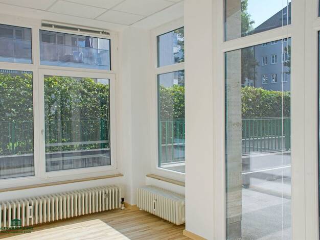 Die Räumlichkeiten liegen im Erdgeschoß eines gepflegten Büro- und Wohngebäudes und sind direkt zugänglich. Sie wurden saniert und sind bestandsfrei. Aufgrund der großen Fensterflächen sind die Räume...