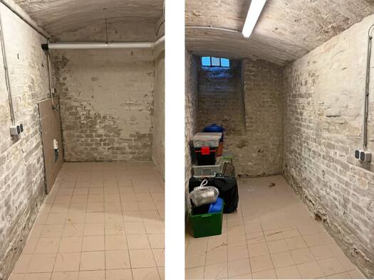Die Ordinationsräume Nr. 11 und 12 im Kellergeschoss umfassen eine Nutzfläche von 102,77 m² und bestehen aus einem Durchgang, zwei Zimmern, einem weiteren Durchgang und einem Zimmer. Das Gebäude stam...