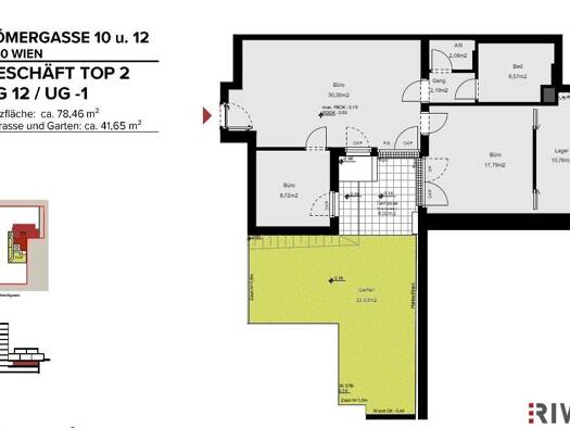 Zum Verkauf gelangt ein Büro in der Römergasse. Die Büroräumlichkeiten befinden sich in einem im Jahr 2022 (Q4) erbauten, gepflegten Gebäude. Das Objekt umfasst insgesamt eine Nutzfläche von ca. 78,4...