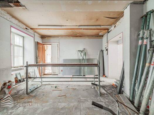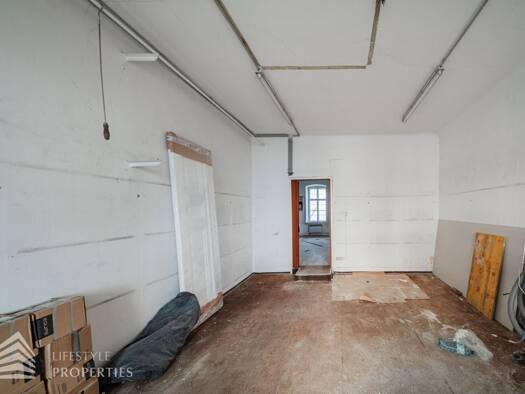 Geschäfts- und Büroräumlichkeiten im Umbau - A) Geschäftslokal EG I im KG/EG, 488 m² Nfl.; aufgeteilt in KG: Garage, 5 Doppelparker, Aufzug, 3 Weinkeller, Lagerraum, Gang, 272,30 m²; EG: Geschäftslok...