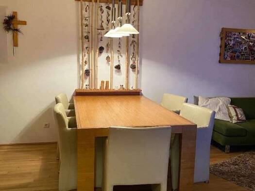 1.Stock (das Gebäude besteht insgesamt aus nur 6 Wohnungen) 70 m2 + südseitige Terrasse durchdachte Raumgestaltung 60 m2 Eigengrund (2 Marillenbäume) + gemeinschaftlicher Gartenanteil geräumig...