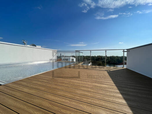 Kurzbeschreibung Dieses exklusive Penthouse bietet ein einzigartiges Lebensgefühl. Die Dachterrasse mit Pool und atemberaubendem Rundumblick über die alte Donau bis in die Stadt runden das luxuriöse ...