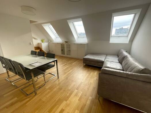Diese traumhafte Wohnung im Dachgeschoss verwöhnt Sie den ganzen Tag über mit Wohlfühlatmosphäre. Eine hochwertige Ausstattung wie außenliegender Sonnenschutz, Echtholz-Parkett aus Eiche und Fußboden...