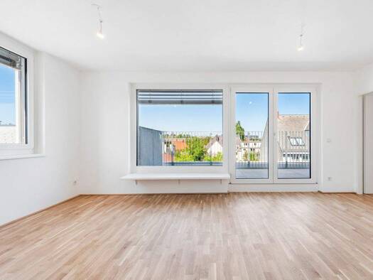 SEHR HELLE, RUHIGE DACHGESCHOSS-MAISONETTE MIT UNEINSICHTIGER DACHTERRASSE - NAHE MAURER HAUPTPLATZ ZU KAUFEN! Diese sehr helle und außergewöhnlich ruhige Dachgeschoss-Maisonette bietet ein Wohngefüh...
