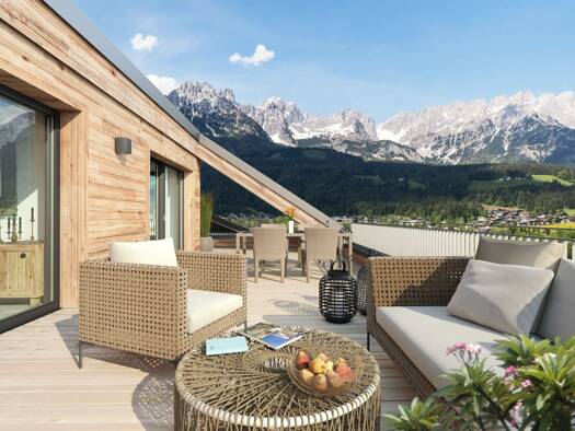 Exklusive Maisonette-Wohnung in der "Lift-Residenz Scheffau" mit Panoramablick Diese stilvolle Maisonette-Wohnung erstreckt sich über das 2. Obergeschoss und das Dachgeschoss der renommierten "Lift-R...