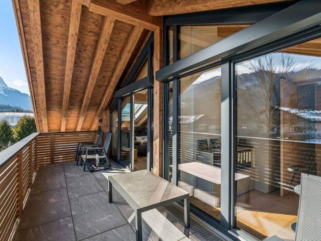 Alpspitz-Chalets - Dachgeschoss A5 Fertiggestellt und bezugsfertig! Hideaway - Aber Luxus Diese exklusiv von Engel & Völkers angebotene Dachgeschoss-Wohnung befindet sich in einem der beiden Neub...