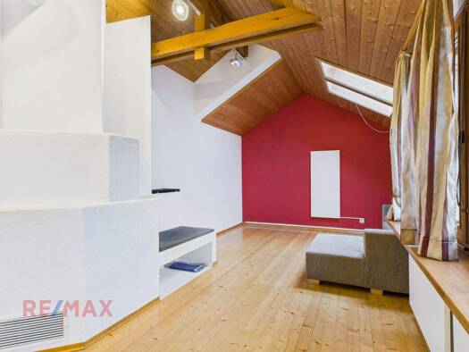 + Helle Räume + Großer Wohn-/Essbereich + Terrasse mit Blick auf die Wallfahrstkirche + Fenster im Bad + 9,80 m² reduzierte Kopffreiheit + Gemauertes Kellerabteil mit Fenster + Inkl. Parkplatz Diese ...