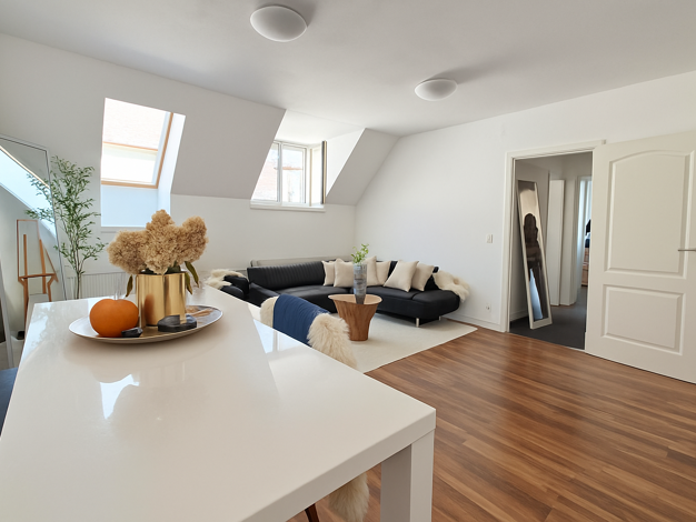 Ein Nest zum Verlieben - Wunderschöne 3-Zimmer-Dachgeschosswohnung mit sonniger Terrasse nahe U1 Kagraner Platz Die Wohnung ist für drei Jahre vermietet und bietet einen attraktiven Zinssatz - ideal ...