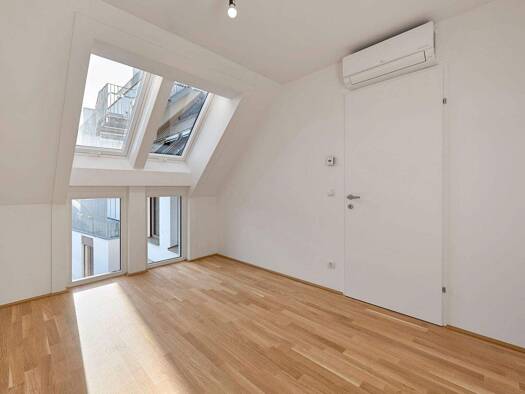 Die klimatisierte, helle 3-Zimmer Dachgeschoss-Maisonettewohnung mit großer Terrasse befindet sich im 3. und 4. Liftgeschoss eines 2019 errichteten, gepflegten Wohnhauses mit 11 ETW in ruhiger Grünla...