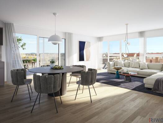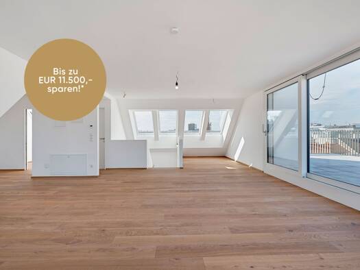 Diese exklusive Dachgeschoßwohnung mit rund 105 m² Wohnfläche überzeugt durch ein lichtdurchflutetes Raumkonzept, moderne Eleganz und erstklassigen Wohnkomfort. Der großzügige, knapp 32 m² große Wohn...