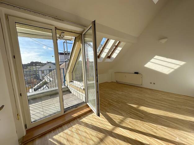 Ein Nest zum Verlieben - Wunderschöne 3-Zimmer-Dachgeschosswohnung mit sonniger Terrasse nahe U1 Kagraner Platz Die Wohnung ist für drei Jahre vermietet und bietet einen attraktiven Zinssatz - ideal ...