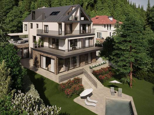 Alle acht Wohneinheiten überzeugen durch ihre durchdachte Planung und großzügige Außenflächen - ob Terrasse, Balkon oder privater Gartenbereich. Große Fensterfronten sorgen für lichtdurchflutete Räum...
