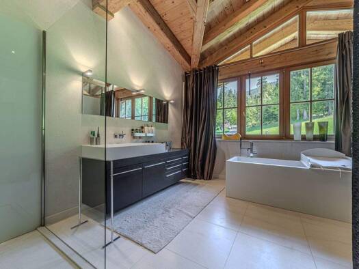 Diese Wohnresidenz besticht durch die gelungene Kombination aus moderner Architektur und traditionellem alpinen Baustil, die ihr eine elegante Note und ein einladendes Gefühl von Zuhause verleiht. Di...