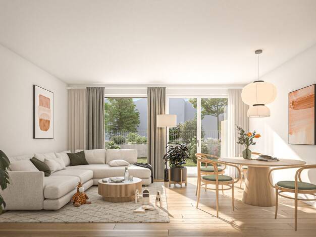 Diese moderne Neubau-Gartenwohnung im Erdgeschoß überzeugt durch eine funktionale Raumaufteilung und hochwertige Wohnqualität in ruhiger Grünlage. Der offen gestaltete Wohn- und Essbereich mit integr...