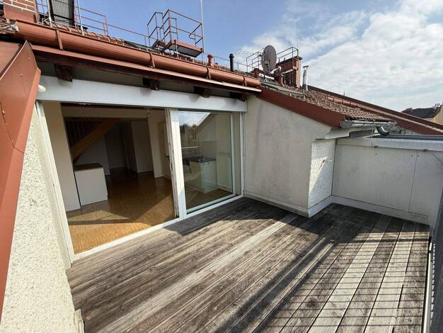 Sehr schöne und gemütliche Dachgeschossmaisonette im 3. Stock ohne Lift zu vermieten. Im Untergeschoss 2 Zimmer (eines davon mit Balkon und begehbaren Schrank), Bad mit Whirlpool und Dusche, extra WC...