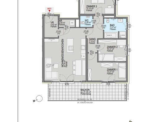 GROSSZÜGIGE 4-ZIMMER-WOHNUNG MIT 2 BALKONEN, SEPARATER KÜCHE & AUTOABSTELLPLÄTZEN - BERLINER RING 18, 8047 GRAZ Diese charmante und großzügig geschnittene Wohnung im beliebten Grazer Bezir...