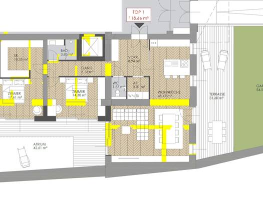 TOP 2 ist eine seltene Gelegenheit: eine großzügige 3-Zimmer-Wohnung im Hochparterre, verbunden mit einem außergewöhnlich großen Garten von über 218 m². Die Wohnung bietet ein warmes Altbaugefühl, ve...